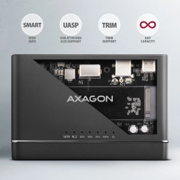 - 2.5"/3.5" SATA SSD/HDD; SATA M.2 přes redukci (např. AXAGON RSS-M2SD); bez omezení kapacity
