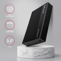 Externí pouzdro AXAGON EE35-GTR kombinuje elegantní design a vysoký výkon. Vyrobeno z žebrovaného hliníku, pomáhá chlazení a chrání disk před poškozením. Pro maximální pohodlí nabízí pouzdro oboustranný USB-C konektor a podporu pro moderní SSD disky prostřednictvím standardu SATA 6G.