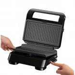 S výkonem 800 W je příprava vašich oblíbených pokrmů rychlá a bez dlouhého čekání na zahřátí. Sendvičovač je také prostorově úsporný, protože ho můžete snadno uložit ve vertikální poloze.