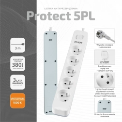 Lišta PROTECT 5PL je navržena pro bezpečné napájení a účinnou přepěťovou ochranu citlivé elektroniky. Díky kvalitnímu zpracování a dlouhému přívodnímu kabelu 3 m pohodlně dosáhne tam, kde ji potřebujete.