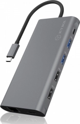 Rozšiřte připojení svého notebooku jediným kabelem díky kompaktní dokovací stanici 12v1. Nabízí 2× USB‑C, 2× USB‑A 3.0, 2× USB‑A 2.0, 2× HDMI, DisplayPort 1.4, čtečku SD/microSD a Gigabit LAN. Podporuje Power Delivery až 100 W, přenosy do 5 Gb/s a zobrazení až na třech monitorech v 4K/60 Hz.