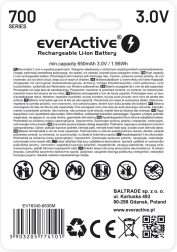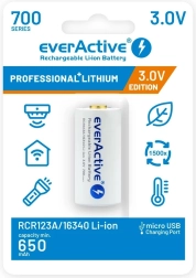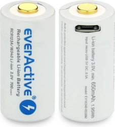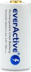 Inovativní nabíjecí akumulátor 16340 EverActive s kapacitou 700 mAh je ideální volbou pro každý elektronický přístroj. Tento Li-ion akumulátor vyniká svojí speciální verzi napětí 3V, což jej činí přímým náhradníkem běžných baterií CR123. Jeho konstrukce zahrnuje elektronickou ochranu PCM, která chrání před přebitím, hlubokým vybitím a zkratem.
