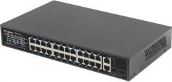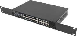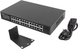 Lanberg RSFE-24P-2C-250 napájí i přenáší data po jednom kabelu díky PoE/PoE+ (IEEE 802.3af/at). Šetří čas i náklady na samostatnou elektroinstalaci a zjednodušuje nasazení v rozlehlých objektech, kde koncová zařízení nemají dostupnou zásuvku – ideální pro IP kamery, VoIP telefony, Wi‑Fi přístupové body či systémy kontroly přístupu.