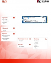 Zrychlete svůj počítač se SSD diskem KINGSTON NV3 v provedení M.2 2280 s kapacitou 500 GB a rozhraním PCIe 4.0 NVMe. Nabízí rychlosti až 6000/2200 MB/s (čtení/zápis), tichý provoz a nízkou spotřebu – ideální volba pro moderní notebooky a kompaktní PC.