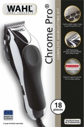 Wahl Chrome Pro je elektrická zastřihovač vlasů ideální pro ty, kteří hledají sílu, preciznost a klasický vzhled. Nabízí samoostřicí čepele a prémiový motor PowerDrive pro hladké použití.