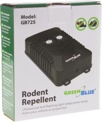 Odpuzovač GreenBlue využívá ultrazvuky s proměnlivou frekvencí v rozmezí 18–36 kHz. Tyto zvuky jsou neškodné pro psy, kočky a jiné domácí mazlíčky, ale efektivně odpuzují hlodavce a kuny. Zařízení lze napájet přímo z automobilového akumulátoru, pomocí baterií nebo USB kabelu, což umožňuje napájení ze sítě. Instalace je snadná – lze jej připevnit pod kapotu auta, na stěnu garáže nebo na jiné vhodné místo.