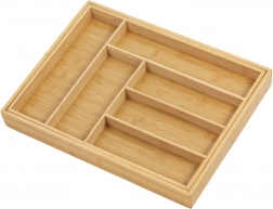 Díky chytrému členění je ideální nejen na příbory, ale i na vařečky, škrabky, metličky či drobné kuchyňské pomůcky. Stejně dobře poslouží v kanceláři na psací potřeby nebo v koupelně na kosmetiku.