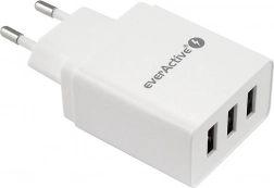 Kompaktní síťová nabíječka everActive s 3× USB a technologií iQ Smart Charging nabije současně až tři zařízení. Nabízí rychlé a bezpečné nabíjení smartphonů, tabletů a dalších gadgetů, má ochranu proti přepětí, zkratu a přehřátí a díky energetické účinnosti třídy VI má minimální ztráty i spotřebu ve standby.