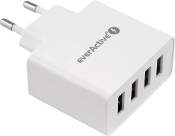 Univerzální nabíječka everActive s chytrým rozpoznáním připojeného zařízení automaticky nastaví optimální nabíjecí proud pro co nejrychlejší a zároveň šetrné nabíjení. Čtyři široce rozestavěné USB porty umožní pohodlné připojení i silnějších kabelů – ideální do domácnosti, kanceláře i na cesty.