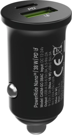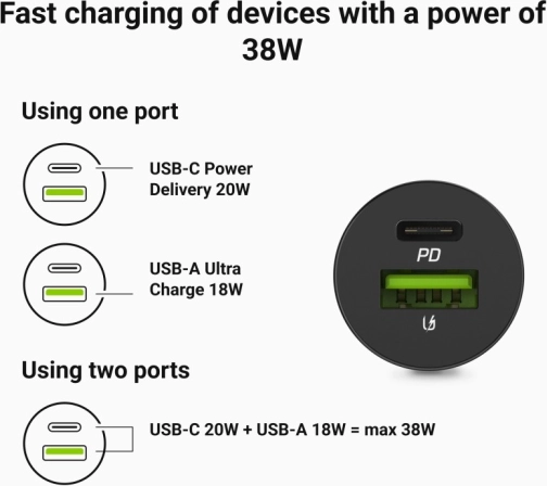 autonabíječka GREEN CELL PowerRide Nano38 38 W, USB‑C + USB‑A s Power Delivery 3.0 a Ultra Charge