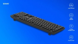 Elegantní a spolehlivá bezdrátová klávesnice Savio KB-02 nabízí stabilní 2,4 GHz připojení, plnohodnotné rozložení US (104 kláves) a nízký profil pro pohodlné psaní doma i v kanceláři. Díky životnosti kláves až 8 milionů stisků a snadnému Plug & Play je ideální volbou pro každodenní práci bez kabelů.