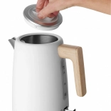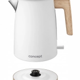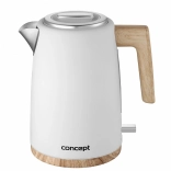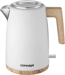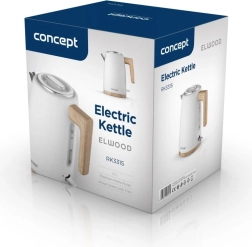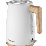 Objevte krásu a funkčnost v jednom. Konvice CONCEPT ELWOOD v bílé barvě s dřevěnými akcenty skvěle zapadne do moderní i tradiční kuchyně. Díky objemu 1,7 l připravíte rychle vodu pro celou rodinu, zatímco skrytá topná spirála usnadňuje čištění a minimalizuje tvorbu vodního kamene.