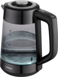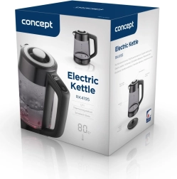 Elegantní skleněná konvice CONCEPT RK4195 nabízí 7 úrovní regulace teploty (40 °C až var), praktickou funkci Keep Warm pro udržení zvolené teploty a moderní design z kouřového skla s LED podsvícením podle teploty. Díky kvalitnímu sklu, otočné základně 360° a bezpečnostnímu systému je ideální pro milovníky čajů, kávy i rodiče malých dětí.