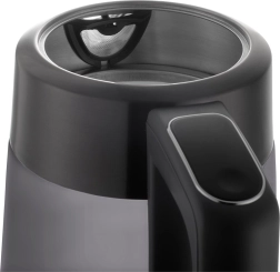 Kouřové sklo v kombinaci s barevným LED podsvícením, které se mění dle aktuální teploty vody, dodává konvici moderní vzhled a přehled o procesu ohřevu. Odolné, zdravotně nezávadné sklo se zesíleným nerezovým lemem zvyšuje životnost, zatímco plně otočná základna 360° a úložný prostor pro kabel zajišťují pohodlné používání v každé kuchyni.