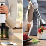 Součástí balení je praktický sekáček na bylinky, ořechy či zeleninu, šlehací metla na krémy a sníh a odměrná nádoba pro přesné mixování menších porcí. Patentované uvolnění příslušenství umožní rychlou výměnu nástavců a snadné čištění. První na světě keramická spojka zajišťuje dlouhou životnost a plné přenesení výkonu na nohu mixéru.