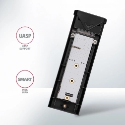Výhodou je možnost instalace SSD karet ve třech různých délkách - 42, 60 a 80 mm a bez omezení kapacity jednotek. Snadná instalace pomocí jediné šrouby usnadňuje výměnu SSD disků, což zjednodušuje úlohy jako migraci dat či testování.