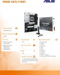 ASUS Prime X870-P WiFi je spolehlivý základ pro výkonné sestavy s procesory AMD Ryzen série 9000. Díky 14+2+1 fázovému napájení (až 80 A na fázi), precizní regulaci a efektivnímu chlazení poskytuje stabilitu, kterou potřebujete pro hraní, práci i AI aplikace.