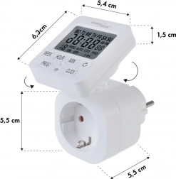 Pro vyšší bezpečí domu využijete funkci Random, která náhodně spíná a vypíná přístroje a simuluje přítomnost osob. Praktické je i odpočítávání pro automatické vypnutí po nastaveném čase a snadné přepnutí na letní/zimní čas. Zařízení zvládne zátěž až 3680 W / 16 A a pracuje v rozsahu teplot od -10 °C do +40 °C.