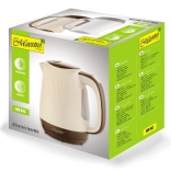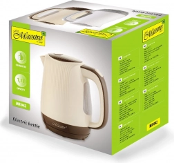 Elektrická konvice Maestro je vybavena otáčecí základnou o 360°, což vám umožňuje její umístění kdekoliv, bez ohledu na polohu rukojeti. Skrytý topný element usnadňuje údržbu konvice, zatímco praktické otevírání víka jediným tlačítkem na rukojeti zvyšuje uživatelský komfort. Pro uspořádaný pracovní prostor slouží úložný prostor na kabel 70 cm. Automatické vypnutí při nedostatku vody chrání před přehřátím a zaručuje bezpečnost. Díky rozměrům 22 x 21 x 15 cm je konvice kompaktní a vhodná pro každodenní použití.