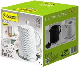 Keramická konvice Maestro se může pochlubit moderním vzhledem díky vysoké kvalitě keramiky, což zajišťuje odolnost a styl. Otočná základna o 360° umožňuje snadné použití z jakéhokoliv úhlu, zatímco úložný prostor pro kabel pomáhá udržet pořádek.