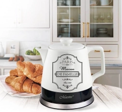 Elegantní keramická konvice MAESTRO PARIS MAISON přinese do vaší kuchyně styl i praktičnost. Keramické tělo lépe drží teplotu, skryté topné těleso usnadňuje čištění a otočná základna 360° s podsvíceným spínačem zajišťují pohodlné používání každý den.