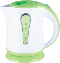 Stylová konvice v bílo‑zeleném provedení je vyrobena z kvalitního plastu odolného vůči vysokým teplotám. Díky ergonomickému držadlu, tlačítku pro otevření víka a ukazateli hladiny vody je obsluha vždy jednoduchá a intuitivní. Kontrolka provozu jasně signalizuje, kdy konvice pracuje.