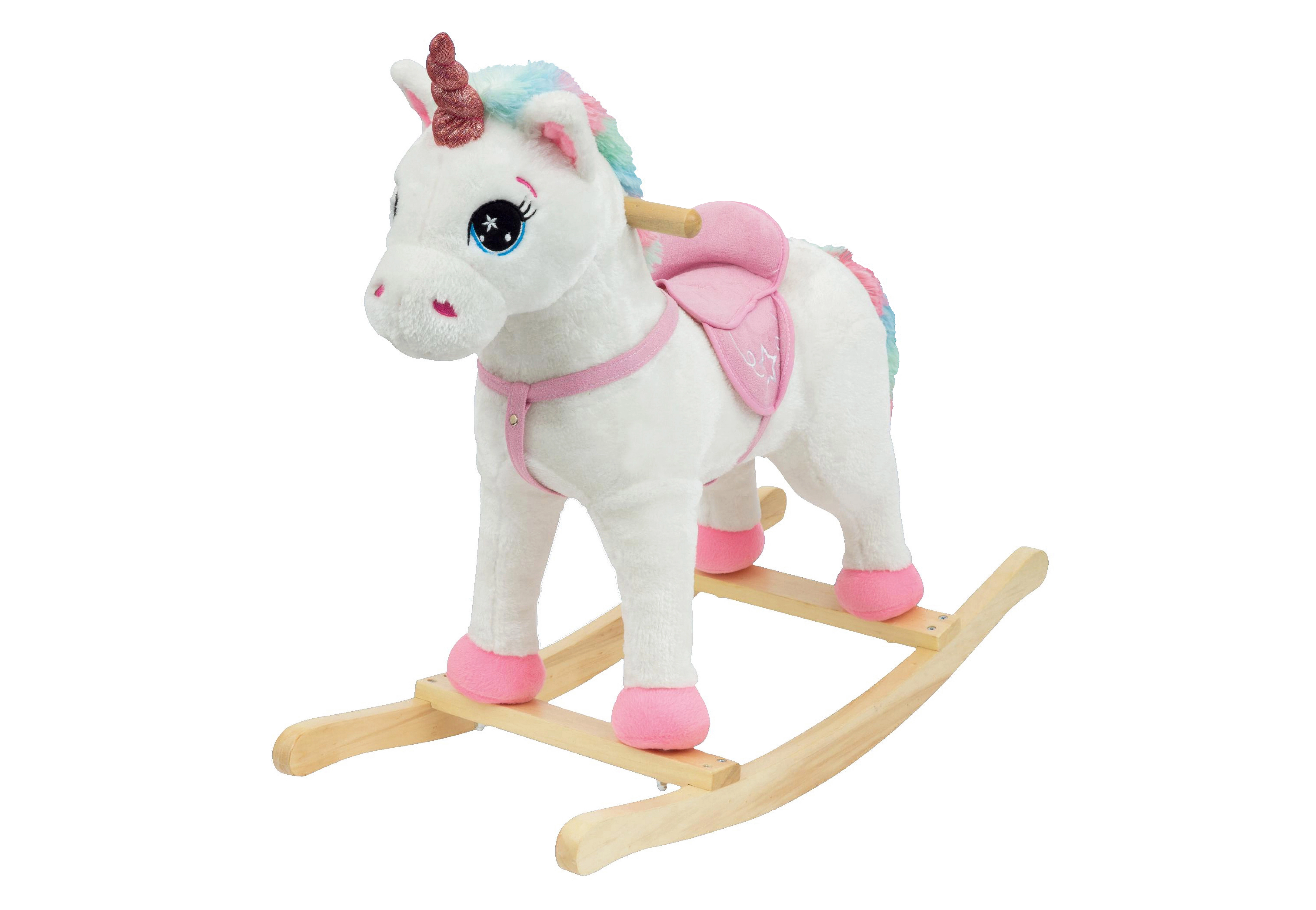 Roztomilý houpací jednorožec z hebkého plyše přinese dětem hodiny bezpečné zábavy a tréninku rovnováhy. Díky dřevěným lyžinám, pohodlnému sedlu a zvukovým efektům je jízda ještě zábavnější. Měkké madla a stabilní konstrukce zajistí pohodlí i jistotu při houpání.