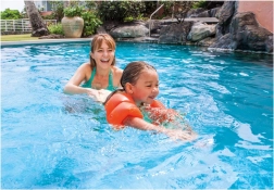 Díky těmto rukávkům si děti mohou užít radostné chvíle ve vodě, zatímco se učí plavat pod dohledem, jak ukazuje obrázek pohody u bazénu.