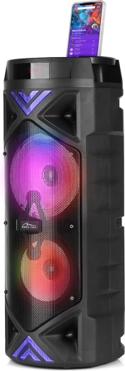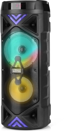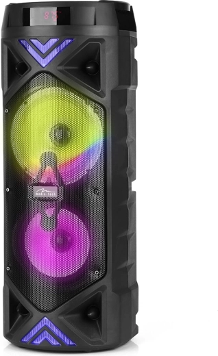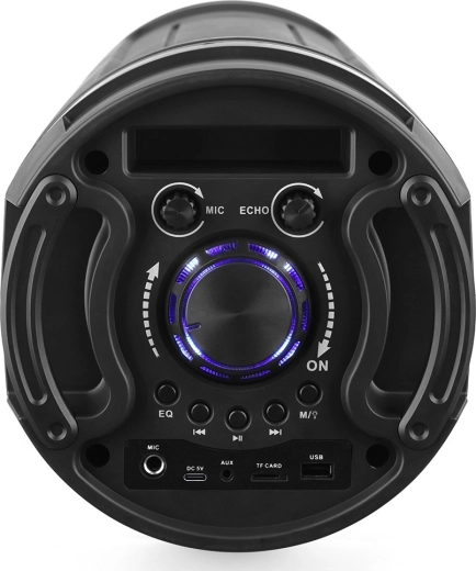 Milovníci karaoke ocení vstup pro mikrofon 6,3 mm s nastavením hlasitosti a efektem ECHO. Pomocí dálkového ovládání máte všechny funkce pod kontrolou, aniž byste museli k reproduktoru. Barevné LED efekty dodají každé párty tu správnou atmosféru.