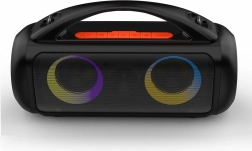 Propracovaná akustika s 2× 3" měniči a 2× pasivními zářiči přináší hutné basy a čisté výšky v rozsahu 100–20 000 Hz. Kompaktní rozměry, integrované madlo a páskem přes rameno usnadní přenášení. LED RGB kruhové efekty podtrhnou atmosféru každé párty.