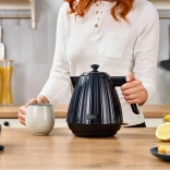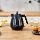 Konvice Lafe Modern Pro skvěle zapadne do moderní kuchyně díky čistému, žebrovanému vzhledu a univerzální černé barvě. Plochá skrytá topná spirála urychluje var a omezuje usazování vodního kamene i v hůře dostupných místech, což usnadňuje údržbu a prodlužuje životnost.