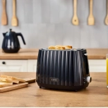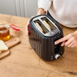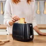 Praktické režimy rozmrazování a ohřívání rozšiřují využití spotřebiče v každodenním provozu. Rozmrazte pečivo přímo z mrazáku nebo rychle ohřejte již připravené topinky bez dalšího opékání. Kombinace elegantního žebrovaného designu a intuitivního ovládání zajišťuje pohodlné a spolehlivé používání.
