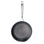 Robustní nerezová pánev o průměru 28 cm s trójvrstvou konstrukcí (nerez 430 / hliník / nerez 304), rychlým a rovnoměrným rozvodem tepla a odolným nepoškrábatelným povrchem s hexagonálním „medovým plástem“. Vhodná na všechny typy sporáků včetně indukce, do trouby až do 260 °C a do myčky.