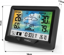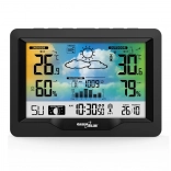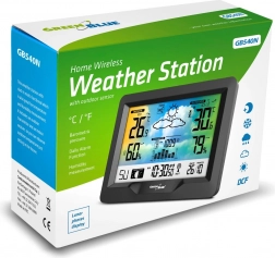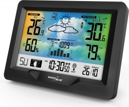 Moderní bezdrátová meteostanice GREENBLUE s barevným displejem, rádiově řízeným časem DCF, vnitřním i venkovním měřením teploty a vlhkosti, barometrem, měsíčními fázemi a grafickou předpovědí počasí. Díky bezdrátovému čidlu sleduje podmínky až do vzdálenosti 60 m a ukazatel komfortu prostředí pomáhá udržet zdravé klima doma.