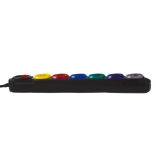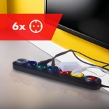 Každá ze šesti zásuvek má jinou barvu pro snadnou identifikaci připojených zařízení – pořádek v kabelech i při plném vytížení.
