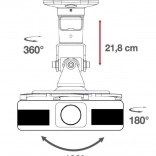 Držák umožňuje široké možnosti nastavení s regulací náklonu až 180° a otácením o 360°. Tyto funkce vám umožní přesně přizpůsobit úhel promítání podle vašich individuálních potřeb. Integrovaný systém pro vedení kabelů dodává estetický vzhled bez viditelných kabelů.