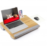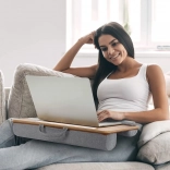 Tento přenosný lapdesk nabízí pohodlné a ergonomické řešení pro používání notebooku mimo stůl. Robustní MDF deska s přírodním vzhledem dřeva poskytuje stabilní podklad, zatímco měkké polstrování se přizpůsobí vašim kolenům pro maximální komfort a menší otřesy při psaní.