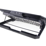 Udržte svůj notebook v bezpečných teplotách a pracujte pohodlněji s touto univerzální chladicí podložkou pro zařízení do 17". Nabízí dva tiché 140mm ventilátory s modrým LED podsvícením, až 8 poloh nastavení výšky pro ergonomii, praktickou antiskluzovou zarážku a 2portový USB hub pro snadné připojení příslušenství.