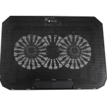 Chladicí podložka je navržena pro notebooky až do 17" a kombinuje účinné chlazení s komfortem při práci. Dva velké 140mm ventilátory s rychlostí až 1300 ot./min. zajišťují plynulý proud vzduchu přes kovovou mřížku a viditelné LED podsvícení dodává styl vašemu pracovišti.