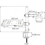 - Vzdálenost montáže VESA od vertikálního sloupku: