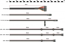 Obsahuje také kabel typu FLAT BLACK pro snadnou instalaci a lepší vzhled v průhledných skříních. Zabezpečení zahrnuje ochranu proti přepětí, zkratu, přetížení a další funkce pro zvýšenou spolehlivost a bezpečnost.