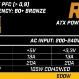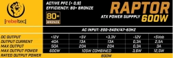 Napájecí zdroj Raptor váží na trh špičkovou výkonovou rezervu díky pokročilé konstrukci a vysoce kvalitním komponentům. Na šině +12V účinně generuje 600W pro napájení CPU a grafické karty, zatímco pro další linky poskytuje rozšiřující výkon až k celkovým 721W.