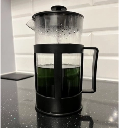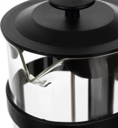Skleněný french press RUHHY spojuje jednoduchost přípravy s plnou chutí nápoje. Průhledná nádoba vám umožní kontrolovat intenzitu louhování, zatímco nerezové pístové sítko účinně oddělí lógr a lístky čaje pro dokonale čistý nálev. Objem 1 litr je ideální pro 3–6 porcí, takže se hodí pro rodiny i setkání s přáteli.