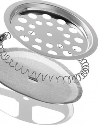 Kovové sítko s pružinou spolehlivě zachytí lógr i lístky čaje a zajistí čistý, plný a vyvážený nápoj.