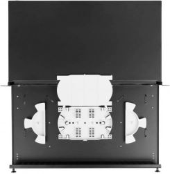 Šuplík přepojnice lze bezpečně vysunout i zcela sejmout. Získáte perfektní přístup pro svařování vláken, čištění a údržbu bez nutnosti vyjímání celého panelu z racku.