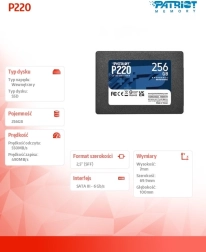 Rychlý a spolehlivý SSD pro každodenní práci i upgrade starších počítačů. Patriot P220 256 GB nabízí rychlost čtení až 550 MB/s a zápisu až 500 MB/s, tenké 2,5" provedení (7 mm) a skvělý poměr cena/výkon pro svižnější start systému i aplikací.