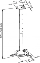 Univerzální stropní držák pro projektory s nosností do 15 kg. Nabízí plnou regulaci včetně naklonění +15° až -15° a otáčení o 360°. Obsahuje nastavitelný rozteč montážních otvorů a systém pro schování kabelů.