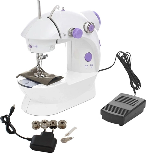 Tento snadno přenosný mini šicí stroj je vyroben z odolného plastu a je ideální pro ty, kteří teprve začínají s šitím, nebo jako doplněk ke standardnímu šicímu stroji. Přístroj lze ovládat pedálem nebo speciálním tlačítkem na krytu.