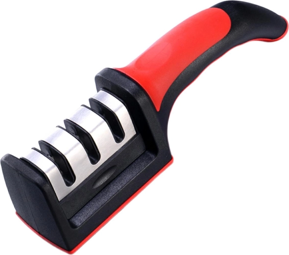 Praktický a účinný třístupňový brousek na nože, se kterým rychle obnovíte ostří i velmi tupých čepelí. Díky třem slotům pro různé fáze broušení poskytuje rychlé, bezpečné a precizní výsledky v domácí kuchyni. Ergonomická rukojeť a kompaktní rozměry zajišťují pohodlné používání a snadné uložení.