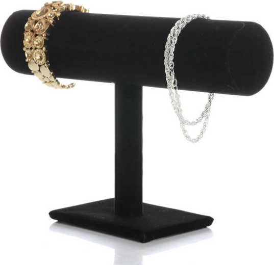Praktický a elegantní stojan na šperky s širokým válečkem pro přehledné vystavení a uložení náramků, hodinek a dalších doplňků. Díky semišovému povrchu je šetrný k jemným materiálům, je lehký, stabilní a přitom velmi prostorný. Ideální do domácnosti i pro vitríny a výlohy v obchodech, u klenotníků či v zastavárnách.